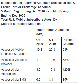 Unos datos sobre esto, el último informe de ComScore sobre el uso de la banca móvil en EEUU. En general la banca móvil crece a un ritmo tremendo, pero las aplicaciones nativas doblan. Es difícil extrapolar porque por un lado parece que hay más aplicaciones web que nativas, pero por otro lado deben de estar apareciendo más aplicaciones nuevas nativas que web.